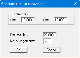 In the dialog box you enter the coordinates for the centre-point and the diameter of the circle. With "No. of segments" you define subdivisions for the circle.