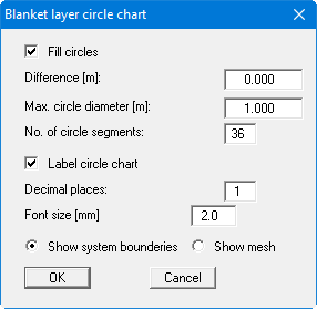If your system contains several blanket layer zones with varying water levels, you can display circles with substantially different sizes, depending on the water level, by entering a value that is marginally larger than the smallest prevalent water level in the "Difference" input box.
