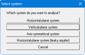 Start the program and go to the "File/New" menu item. Exit the "Common systems" dialog box using "No". You will then see the following dialog box; exit by clicking the "Vertical-plane system" button.