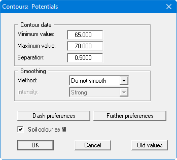 A graphic presentation of the contours is to be created. Go to the menu item "Evaluation/Normal contours". Confirm the "Potentials" selection and get the following dialog box: