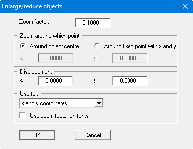 . Because the same factor was calculated for the x and the y direction, enter 0.1 in "Zoom factor" and leave the setting in "Use for:" as "x and y coordinates". Deactivate the "Use zoom factor on fonts" check box.