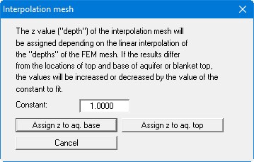 GGU-2D-SSFLOW: Step 7: Assign aquifer base using interpolation mesh (Example 1)