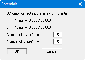 After leaving the dialog box by pressing "OK" you will at first see the same box as that described in "Evaluation/3D". The program calculates the state variables at the array points by linear interpolation of the results of the FEM analysis. You then see the dialog box for coloured contours preferences as described in "Evaluation/3D".
