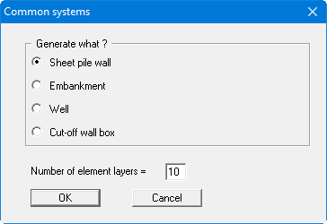 A dialog box opens when you press the required button. Enter the dimensions and the necessary boundary conditions data for the selected system. Once the data is entered the system is displayed on the screen. Of course, you may also use these generated systems as the basis for further refinements.