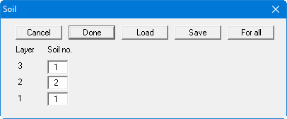 If you edit the given soil numbers and leave the dialog box using "Done" the newly defined soil column will be adopted as of this moment for newly defined elements. If elements are already defined, they can also be retroactively assigned this soil column using the "For all" button.