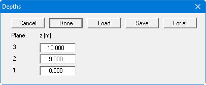 Enter the values of the dialog box above and confirm with "Done". The value "10" stands for the surface of the embankment foreland and "9" is the top of the sealing layer. The value "0" designates the base of the system. Now go to "z/Depths in section" and travel around the left nine points of the FEM mesh (embankment foreland).