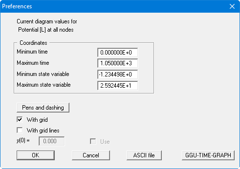 The box shows the minimum and maximum values at the node points. Using the "ASCII file" button, the data can be saved in a record that can be represented as a table, for example, in your word processor.