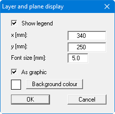 During input and graphical system evaluation you always find yourself in certain planes and layers. The number of the plane and layer are entered in a legend, if you have activated the "Show legend" check box in the dialog box for this menu item.