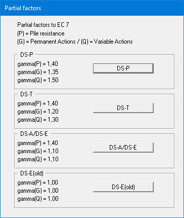 In addition, there is a seismic design situation: DS-E. In the DS-E design situation all partial factors = 1,0.