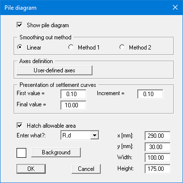 In the first group box you can select a smoothing out method with which the allowable pile load curves and the settlement curves are drawn in the pile diagram: