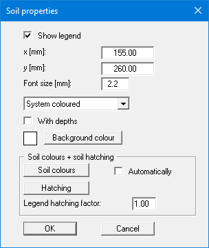 A legend with the soil properties of the individual layers will be displayed on your output sheet if you have clicked the "Show legend" check box. Using this menu item, you can alter the shape and appearance of the legend.
