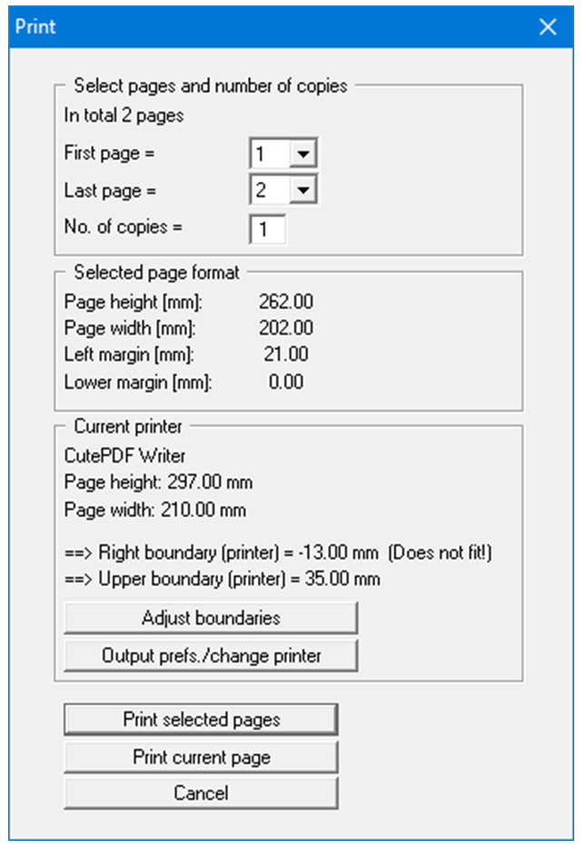 Select the required pages and the number of copies in the upper group box. Below this the same settings are available for page optimisation as where previously described for the menu item "File/Print all bore logs" .