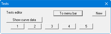 The tests are automatically numbered and the test numbers ("1, 2, 3, ...") shown on the respective buttons. After clicking on "New" or on the button of an existing test ("1", "2", ...) a dialog box opens for entering or editing test data.