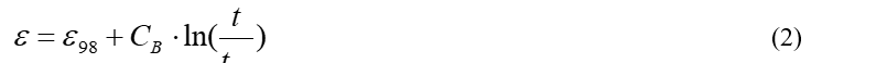 CBlog = creep coefficient, relative to compression ε and the decadal logarithm.