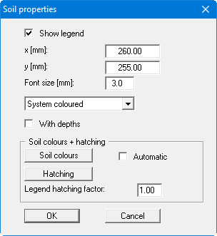 A legend containing the soil properties is displayed with the graphics. If the "Show legend" check box is activated you can edit the representation in the dialog box for this menu item.
