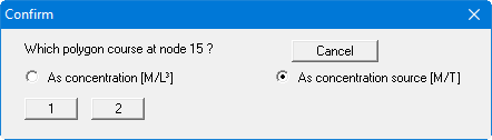 In the example above you can select from two pre-defined boundary condition polygons. Further, you can specify whether the boundary condition is to be a concentration or a concentration source.