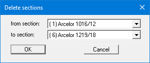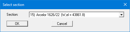 A different section list can be opened by pressing the "Load" button. It is then possible to append the new list to an already open section list. After appending sections it may be expedient to delete any double sections in the list by pressing the "Delete doubles" button. The sections can then be sorted by different characteristics (e.g. moment of inertia or name) by pressing the "Sort" button. The modified section list may then be saved to the program folder as ".rohr_ggu" file for subsequent analyses by pressing the "Save" button.