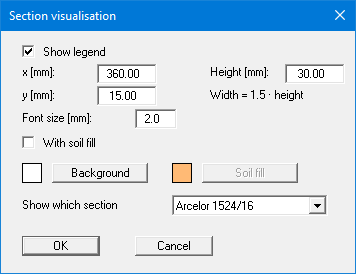 A legend containing a small sketch of the pile section employed is displayed on the screen. Using this menu item you can alter the type of presentation or turn off the legend completely.