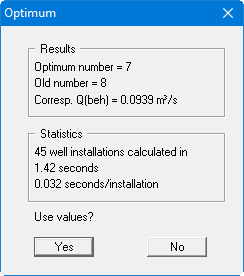 Accept your previous excavation settings with "Yes" and then select the "System/Optimise" menu item once again. After clicking the "Number of wells" button a slightly different dialog box opens: