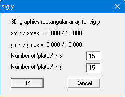 After leaving the dialog box by pressing "OK" you will at first see the same box as that described in "Evaluation/3D contours". The program calculates the state variables at the array points by linear interpolation of the results of the FEM analysis. You then see the dialog box for coloured contours preferences as described in "Evaluation/3D contours" and so on.