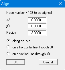 Here, you have the option of aligning the selected nodes along an arc, on a horizontal line through y0 or on a vertical line through x0 with the spacing entered in the appropriate input box.