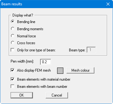 In the lower group box, you can define the familiar visualisation settings, with the addition here of the check box for visualisation of the "Beam elements with material number".