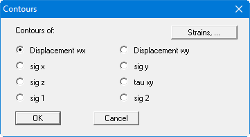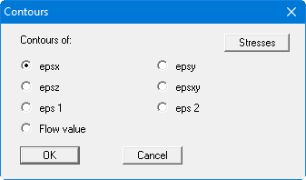 If you select the "Stresses" button, you will once again see the dialog box for selection of stresses and displacements (see above).
