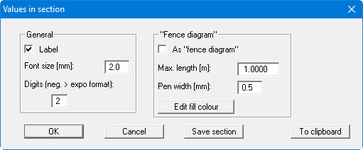 Define the font size and the number format for section labelling in the "General" group box. Your system can also be visualised as a fence diagram by activating the "As fence diagram" check box. Here, you will also find additional fence diagram settings.