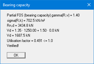 First, an info box concerning the punching verification appears. Then a further window with information on the safety and utilisation factors is displayed.