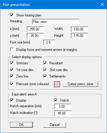 Select the "Output preferences/Footing plan" menu item or click in the "Plan view" drawing element at the right side of the diagram. (Note: The footing analysis diagram is here when analysing in "Multiple footings" mode).
