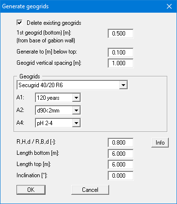 If you do not work with company products, the dialog box for this menu item corresponds to the dialog box displayed when you press the "Automatically" button in the "Reinforced soil system/Enter geogrids manually" menu item.