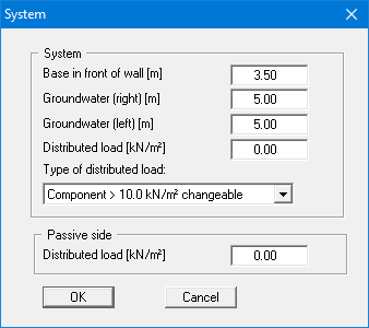 The 5 kN/m² live load for the example system is entered later using the menu item "Editor 1/Berms (active side)".
