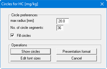 You can generate oriented circle charts with this menu item. The sizes of the circles are represented as a function of the values of the parameters. Mark the parameter to be represented as a circle chart in the first dialog box. The following dialog box then appears:
