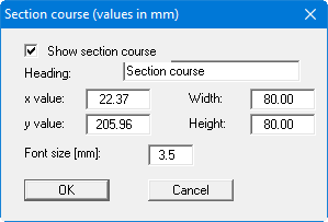 If a section is visualised a legend is shown which includes a section location sketch. If the "Show section course" check box is activated the presentation format can be edited in the dialog box for this menu item. The dialog box can also be accessed by double-clicking in the legend box.