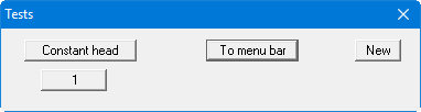 The button shows that you have opened the editor for tests with a constant head. Move to the menu item "Edit/Falling tests" by pressing this button and enter further tests. It is possible to incorporate both standpipe tests and triaxial tests on one output sheet. Move quickly between dialog boxes to enter and edit the different test types using this button."To menu bar"