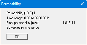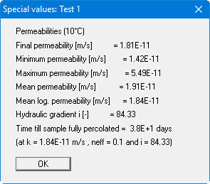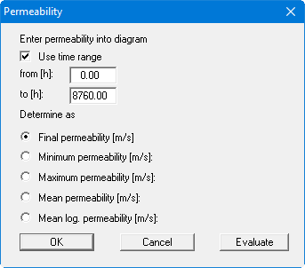 Normally, the permeability at the end of the test is shown in the diagram table. A different evaluation type can be selected in a dialog box after pressing this button. The time range used to determine permeability can also be edited.