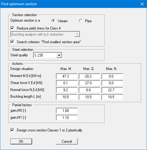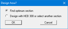 When the iteration is complete info boxes appear; use "OK" to close them. You will then see a prompt for subsequent design; use "Yes" to close it. Then, select the "Find optimum section" option in the dialog box and confirm by pressing "OK".