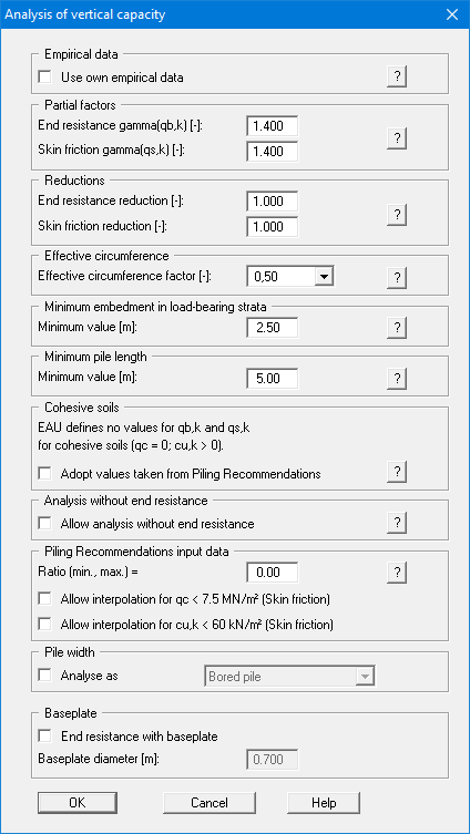 Adopt the data and perform the analysis. The results are displayed in a message box. If you exit the message box by pressing "OK", the editor box analysis of the vertical capacity opens: