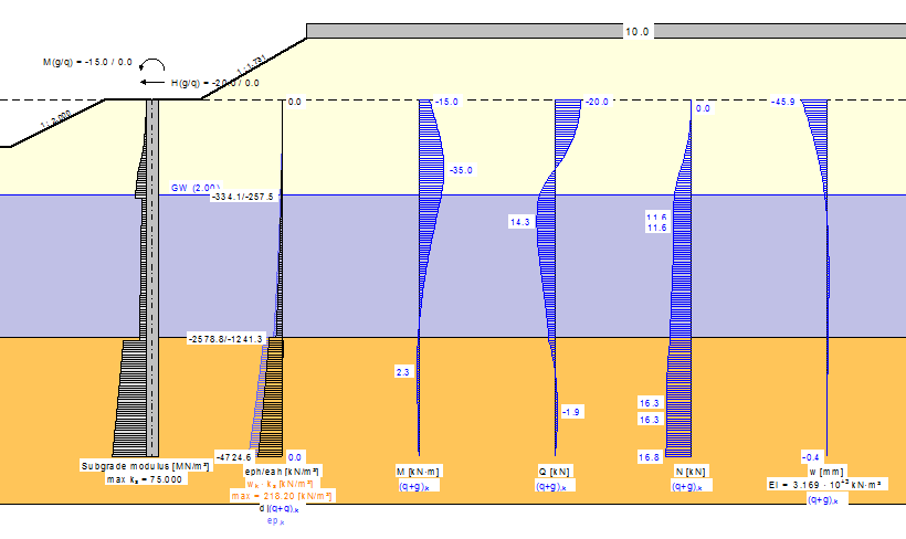 After leaving the info box all governing analysis parameters are displayed on the screen for the whole pile length: