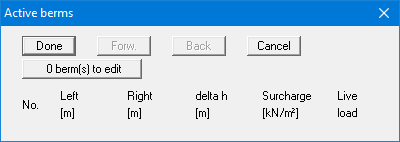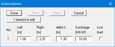 Click "0 berm(s) to edit" and enter 1 as the new number of berms. Enter the following values and click "Done".