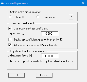 Go to the "Editor 1" menu and select "Active earth pressure".