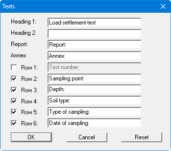 Your input in rows 1 to 6 of the above dialog box, as well as the input for "Report:" and "Annex:" also represent the designations for the input boxes in the "Edit/General" menu item dialog box. If rows are deactivated in the above dialog box, the corresponding input boxes in the "Edit/General" menu item dialog box are also deactivated.