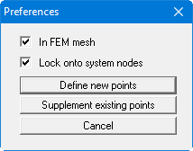 The "In FEM mesh" check box displays the FEM mesh when specifying points; otherwise, only the system outline is displayed. Defined points will be locked on to the system nodes closest to the mouse pointer when clicked, if the "Lock onto system nodes" check box is activated. Otherwise the points can be freely positioned within the system.