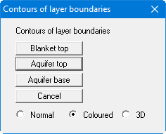 In order to clearly present the layer situation it is possible to generate a contour diagram of the top of the aquifer (aq. top) or the base of the aquifer (aq. base) or the top of the blanket layer (blanket top) for a leaky aquifer.
