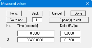 If, during a test, the at-rest groundwater level changes for reasons unconnected to the pumping test (e.g. tidal influence), but is superimposed upon it, you can define a polygon course here that describes this change as a function of time, e.g.: