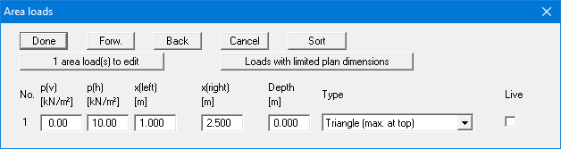 Regarding the kind of earth pressure, area loads can be defined independent of the global preferences (see menu item "Editor 1/Type of earth pressure").