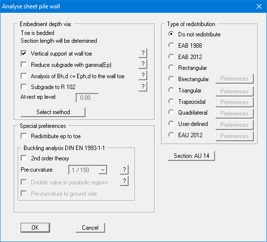 GGU-RETAIN: Start dialog box (Analyse)