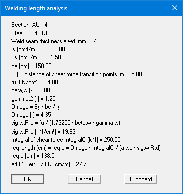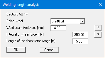 GGU-RETAIN: "Welding lengths analysis (U sections)" menu item