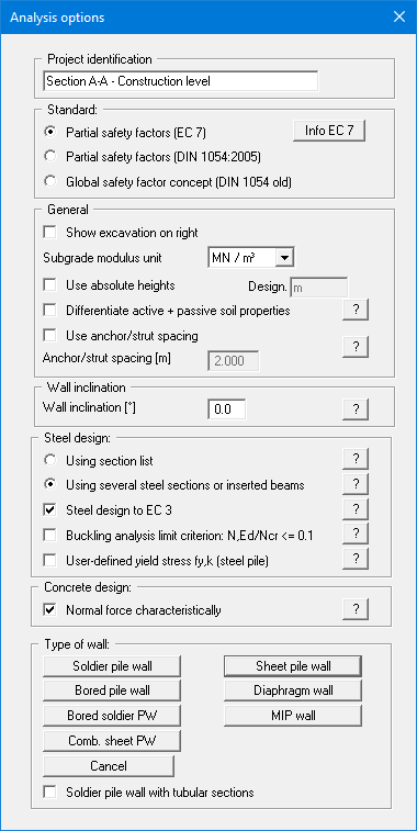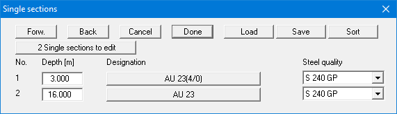 The sheet pile wall is analysed as elastically bedded (menu item "Editor 2/Subgrade reaction moduli").