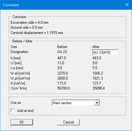 GGU-RETAIN: Worked example 2: Sheet pile wall with corrosion